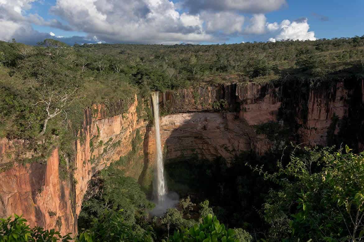 Certamente, a Cachoeira Véu de Noiva é uma das atrações mais visitadas da chapada. Ela fica dentro do Parque Nacional da Chapada dos Guimarães e possui uma queda d’água de 86 metros. É realmente incrível!